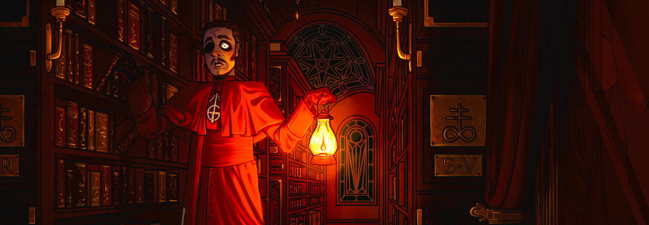 Pieces featuring more than simple props or set pieces fall under the "Scene Illustration" category.Think: Is the room or environment the character(s) are in prominently featured and/or are the character(s) interacting with it?
